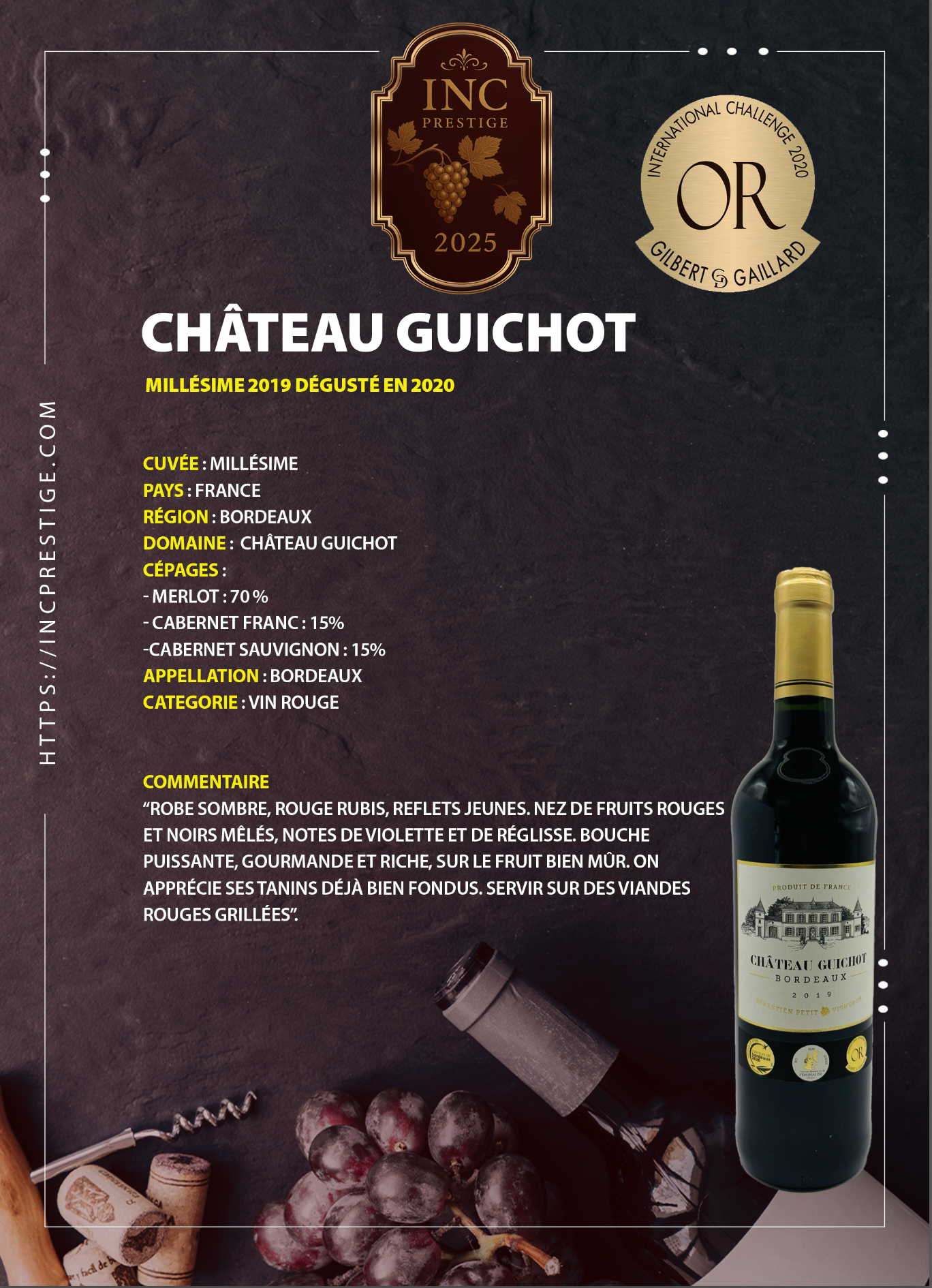 Soyez le premier à laisser votre avis sur “Château Guichot Rouge 2019 Médaille d’Or”