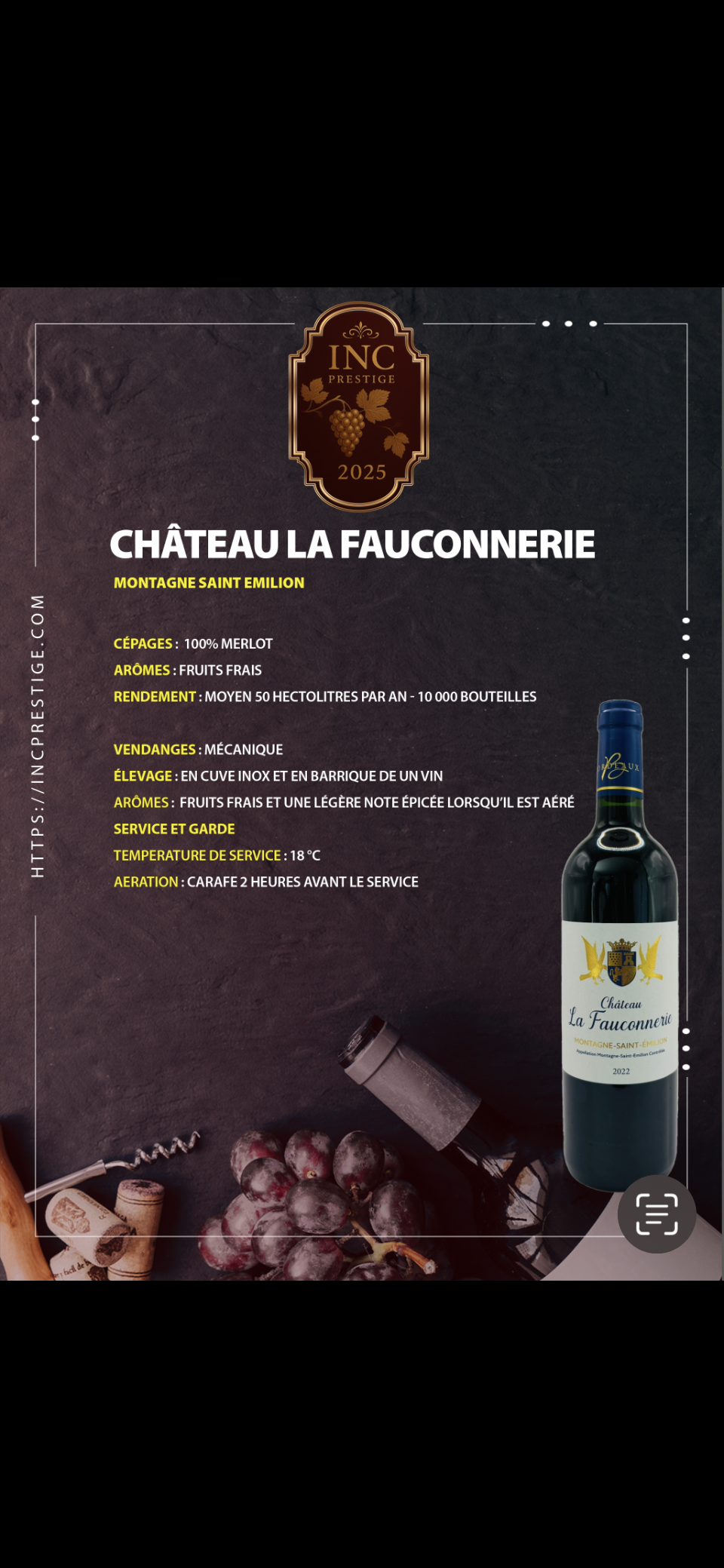 Arômes : fruits frais et une légère note épicée lorsqu’il est aéré