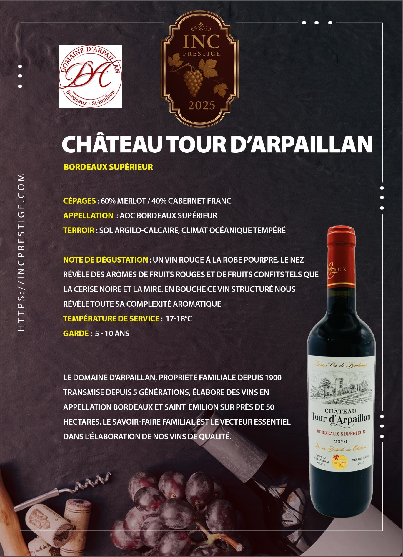 En bouche ce vin structuré nous révèle toute sa complexité aromatique.