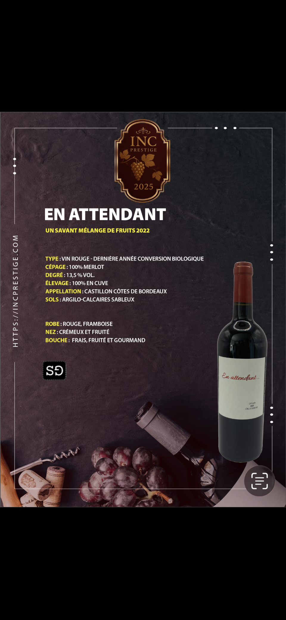 Cépage : 100% MERLOT